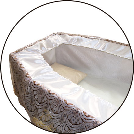 Acabamento interno: tecido firenze, babado de cetim e renda luxo com detalhe dourado