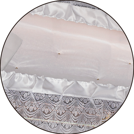 Acabamento interno: tecido firenze, babado em cetim e renda luxo com detalhe dourado